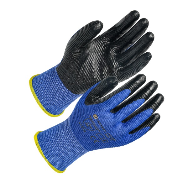 Nitrile Coated polyster Work Gloves are made of polyster knitted glove and coated whole palm with Nitrile Coating.
